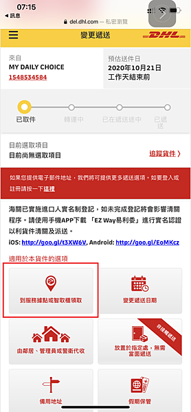 Step1: 選取 "到服務據點或智取櫃領取"