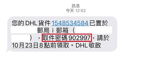 接下來就是等待啦~貨到達之後,簡訊會有取件的專屬密碼-六位數